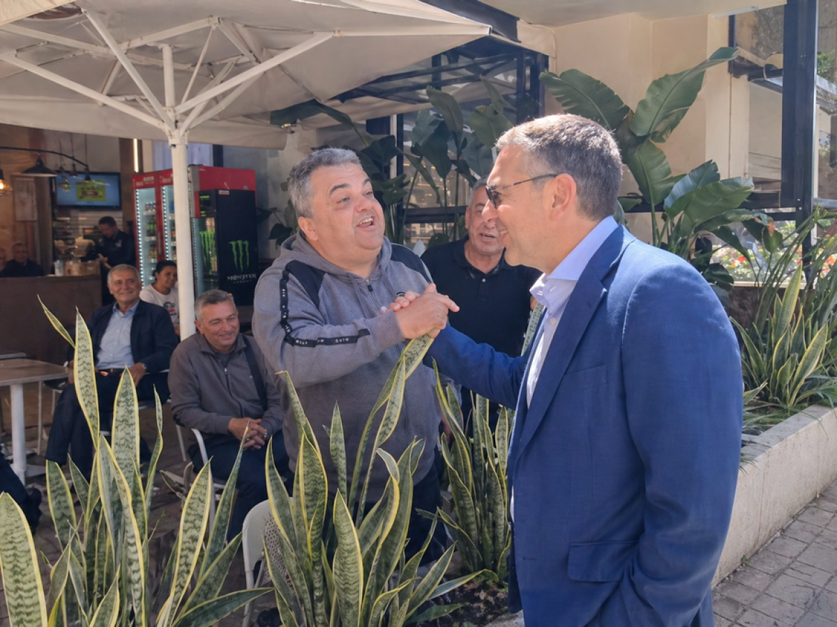 Κατά τη διάρκεια της παρουσίας του, είχε την ευκαιρία να συνομιλήσει με κατοίκους, σε μια περίοδο όπου η ατμόσφαιρα παραμένει ιδιαίτερα γιορτινή λόγω της κατάκτησης του Κυπέλλου Ελλάδας από τον ΟΦΗ.